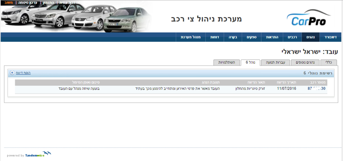 אזור זה מאפשר לנהל מעקב אחר דוחות אשר התקבלו בגין עבירות תנועה של הנהג.